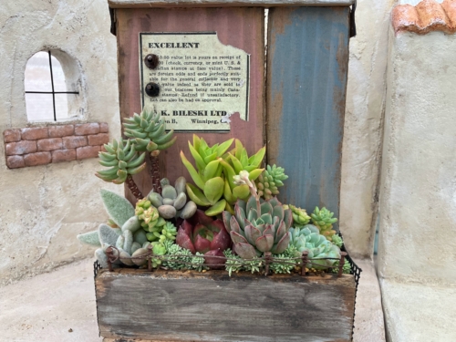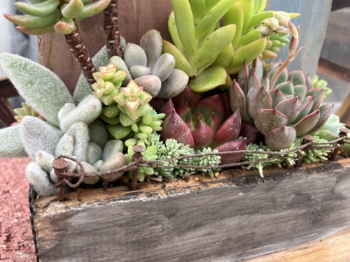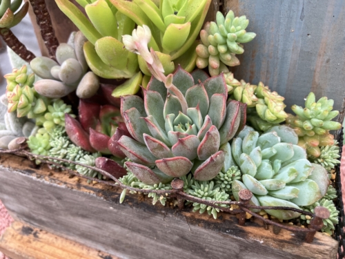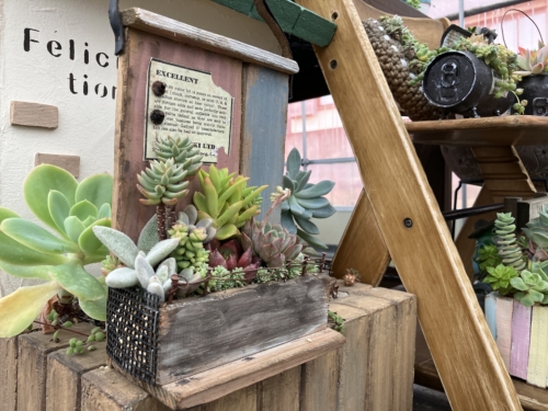 ジャンクっぽいウッドプランターだからちょっとワイルドに寄せ植えしてみました。
