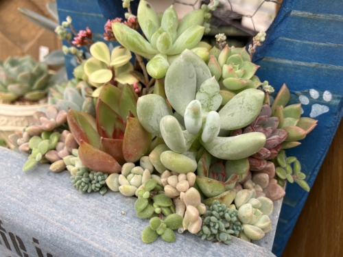 白っぽい色の多肉を入れると全体が明るくなるよね。